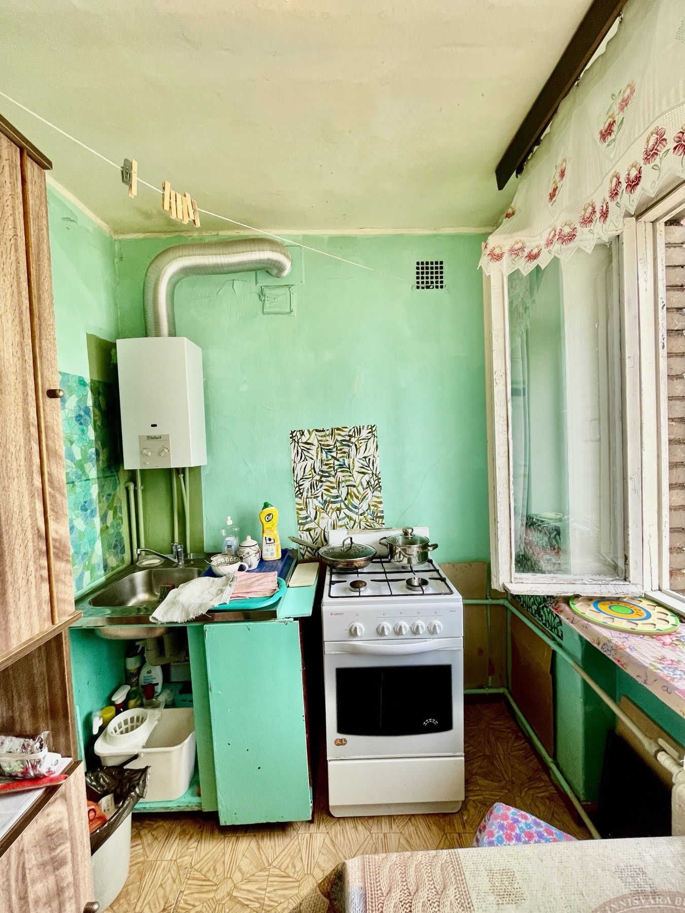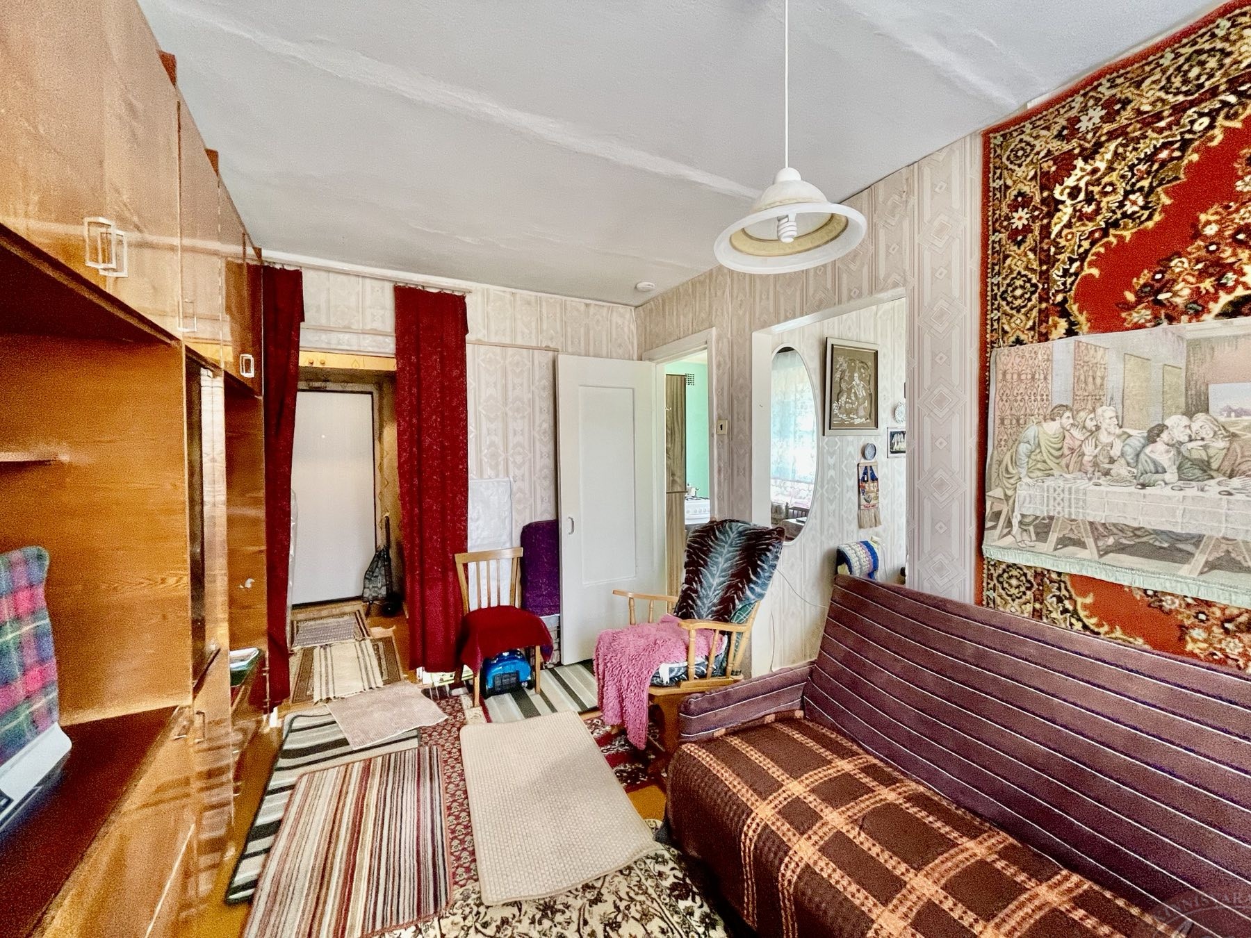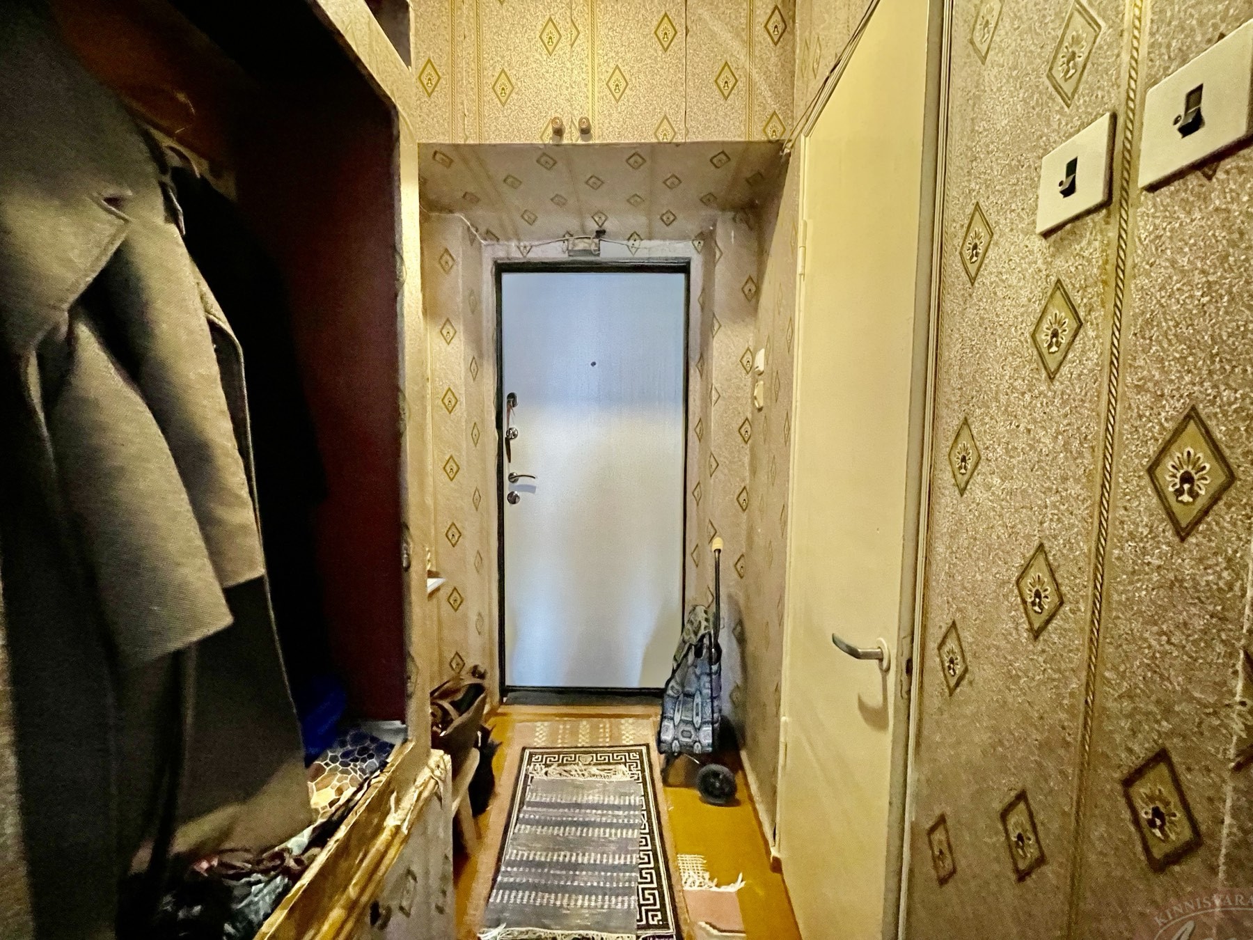 Aknad ja uksed on vanad, radiaatoreid ei ole vahetatud. Aknad avanevad maja kahele poole. Tubade seinad on kaetud tapeediga, laed värvitud, põrand on värvimiseks ette valmistatud. Toas on paigaldatud vahesein, mille abil on loodud teine väike tuba – konstruktsioon on lihtsasti eemaldatav. Ümberplaneeringuid ei ole tehtud.